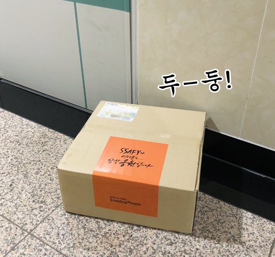 집 앞에 도착한 격려물품 박스!! 바로 언박싱을 해보았습니다.