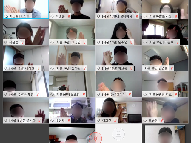 온라인으로 진행된 수료식에서 화상 앱으로 찍었던 반 사진이에요!!