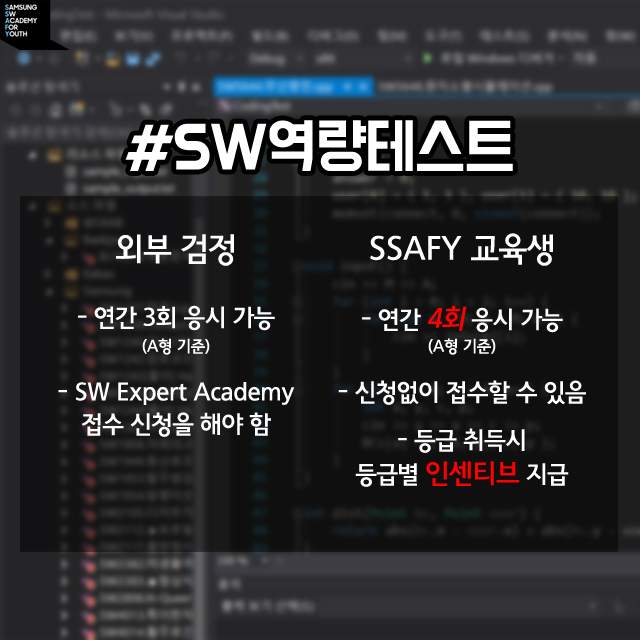 외부 검정 SW 역량테스트에서도 SSAFY 교육생 만의 특별한 혜택이 있습니다.